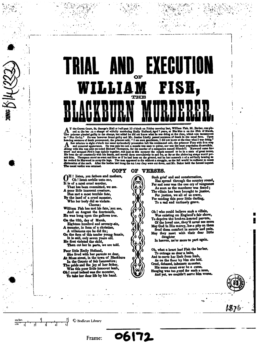 The case of William Fish was the first recorded official use of dogs by police to capture a murderer. On March 28, 1876 seven-yearold Emily Agnes Holland went missing from Birley Street, Blackburn, after telling friends at St. Alban’s School that she had met a nice man and was going to run some errands for him. She was never seen alive again.